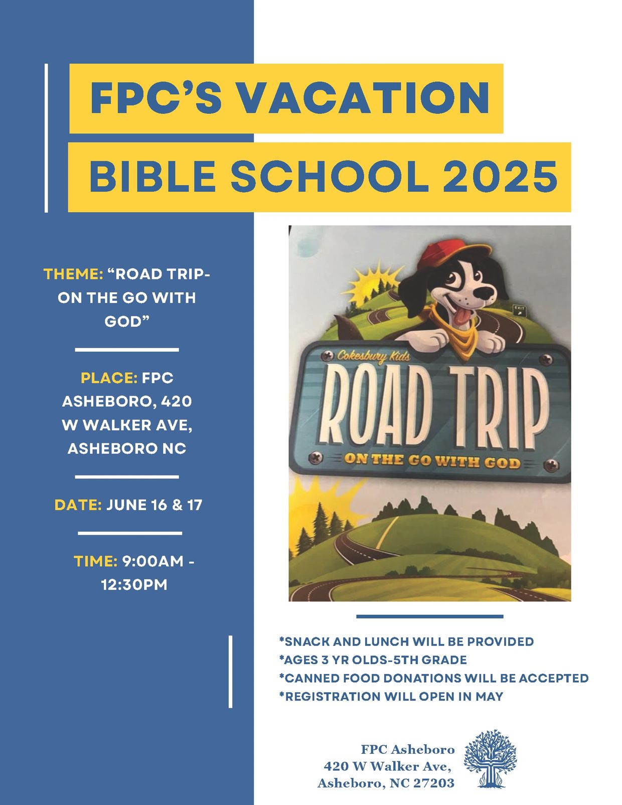 For more information, contact the Church Office at (336) 625-3227 or office@fpcasheboro.org.